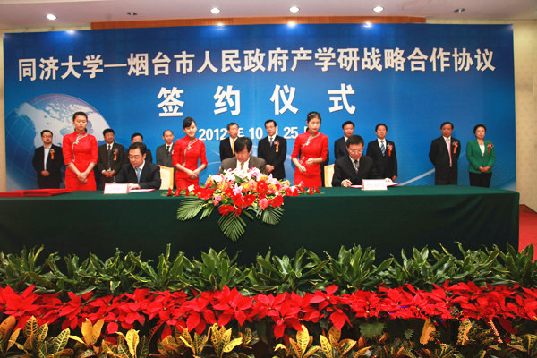 2012年10月25日上午,煙臺市人民政府與同濟大學產(chǎn)學研戰(zhàn)略合作協(xié)議簽約儀式在東山賓館舉行,標志著同濟煙臺轉(zhuǎn)化醫(yī)學研究院正式落戶山東國際生物科技園。同濟大學校長裴鋼,同濟大學校長助理、轉(zhuǎn)化醫(yī)學高等研究院院長孫方霖,市領(lǐng)導張江汀、王良、王曰義、李樹軍、燕衛(wèi)華、王式亮、劉洪波出席儀式。